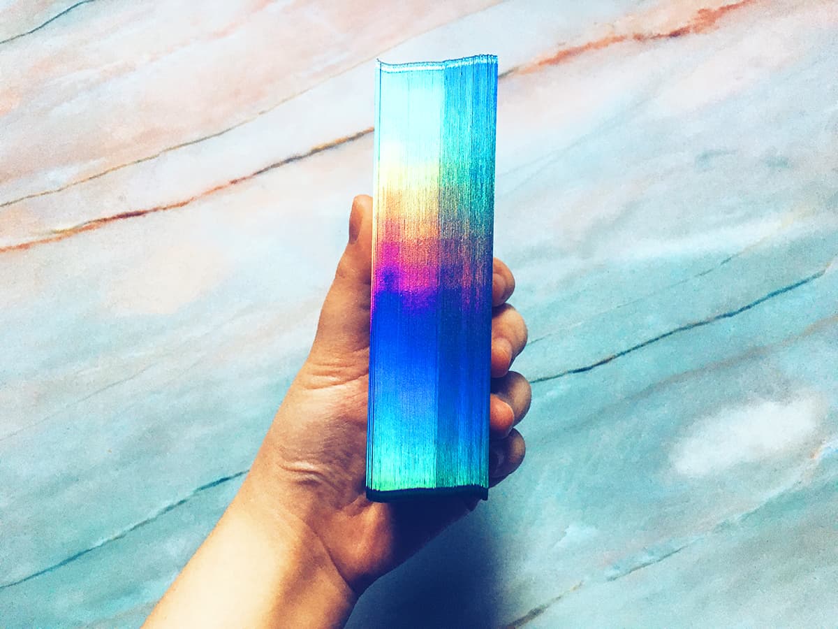 • Blue holographic foiled back design and edges